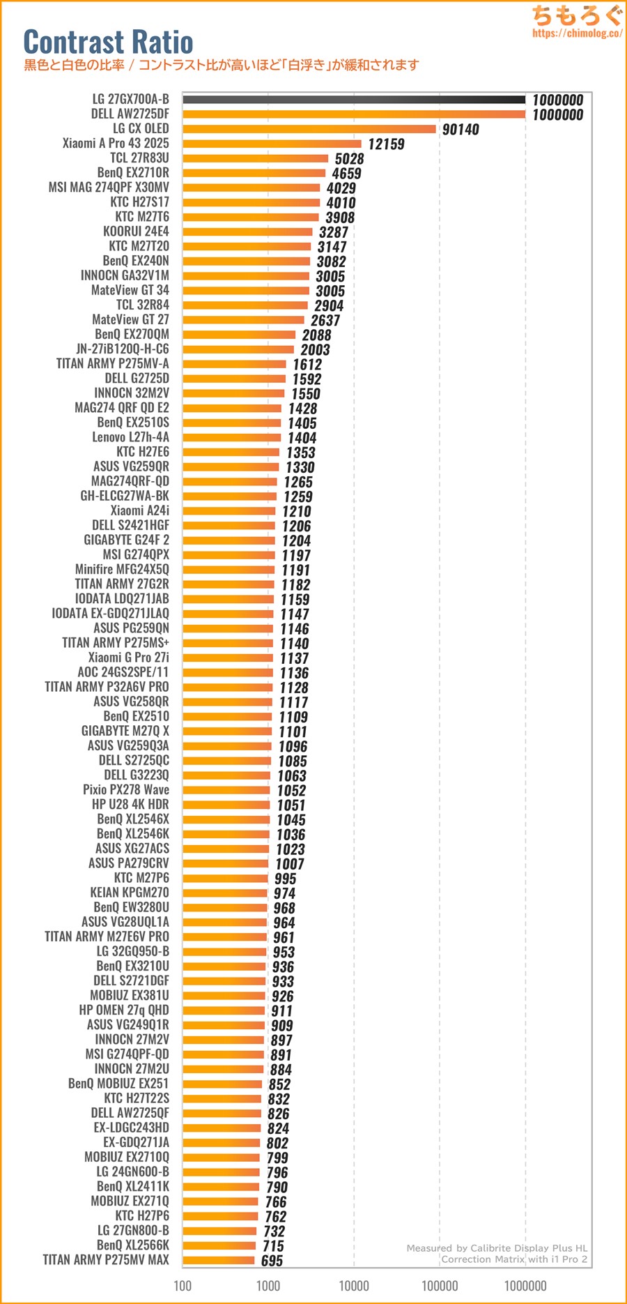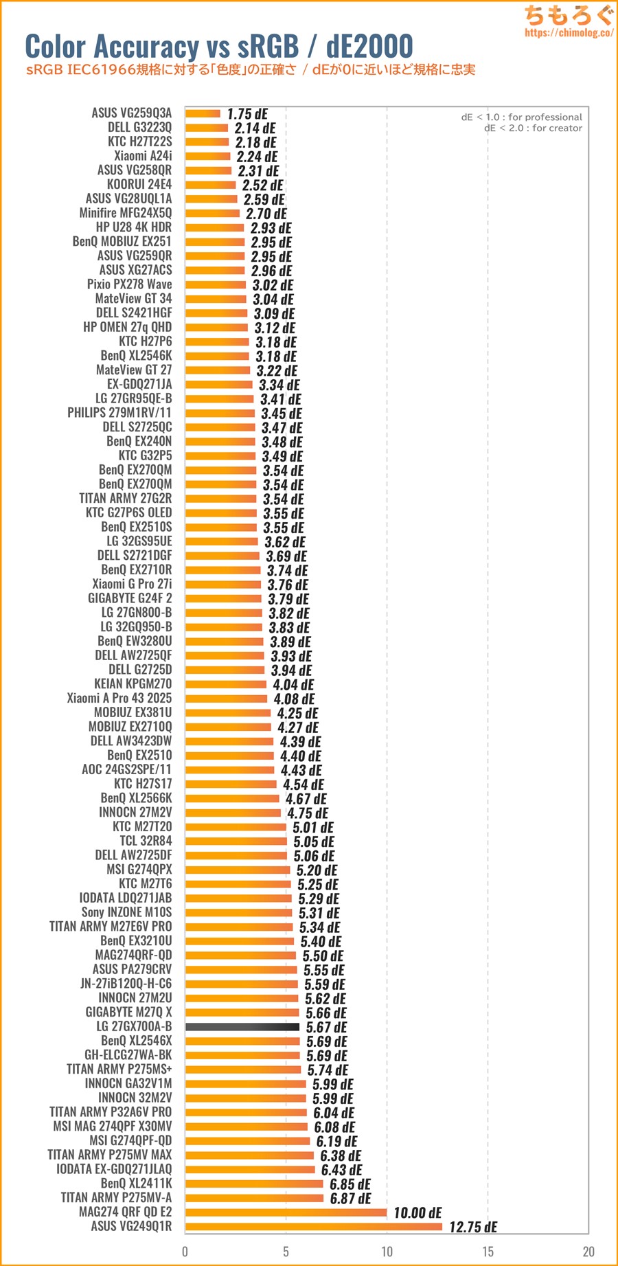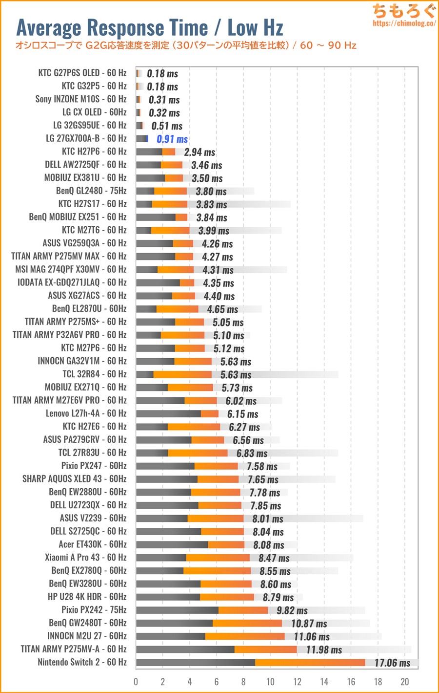 もっと詳しく測定データや比較データを見れば、他の代替案にするか、このままLG 27GX700A-Bで 即決するかヒントになるかもしれません。