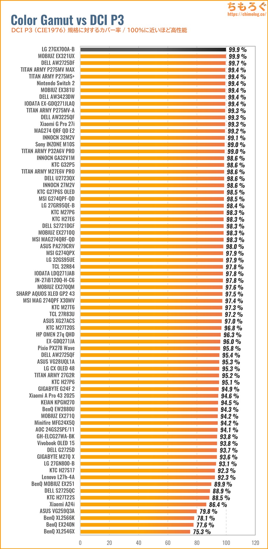 過去レビューした110台近いゲーミングモニターの多くが、藻のような緑だったり青すぎたり・・・とにかくズレた色合いが多く占めます。