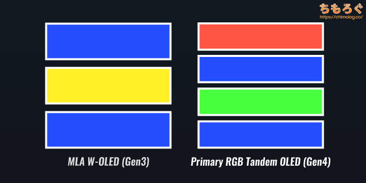 LG DisplayはBGBR発光層を用いた力技で、QD-OLEDに匹敵する画質と、QD-OLEDを超える「汎用性」を実現しました。技術的マイルストーンです。
