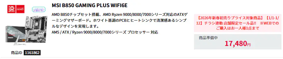 特価DDR5メモリのついでにおすすめなマザーボードです。