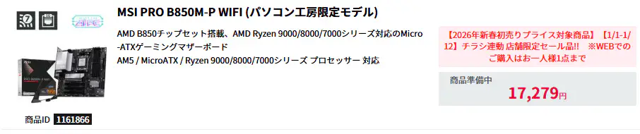 定番ブランド品なら約1.7~1.9万円が相場なので、約1.2万円なら十分に安いです。旧世代のCPUでとにかく安く組むなら検討する余地あり。