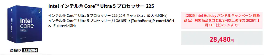 ASUS B860M AYWにおすすめなCPUは「Core Ultra 225」です。