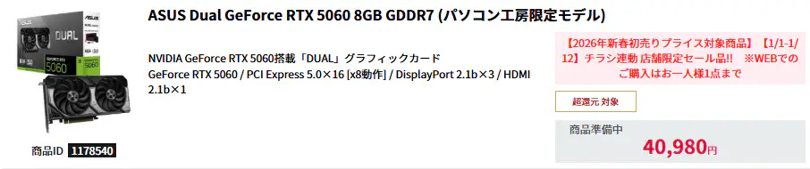 そんな値上げばかり聴こえてくる中、国内最大級のBTOメーカーグループが擁する「パソコン工房」より、新春初売りセールが開催されます。