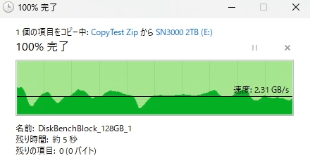 十分な空き容量があれば、100 GB単位の巨大なpSLCキャッシュをサクッと展開でき、QLC NANDの割に安定した書き込み性能を発揮します。