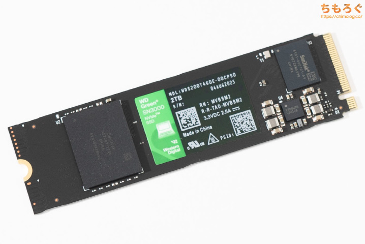 WD Green SN3000は、DRAMキャッシュを搭載しない「DRAMレスSSDです。