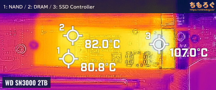 • SSDコントローラ(右):107 ~ 109℃