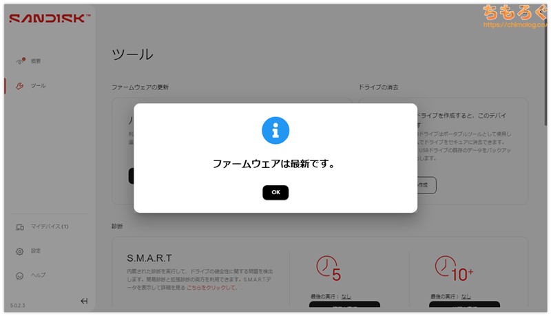 SanDisk公式サイトから無料でダウンロードできる、純正ユーティリティ「SanDisk Dashboard」に対応します。
