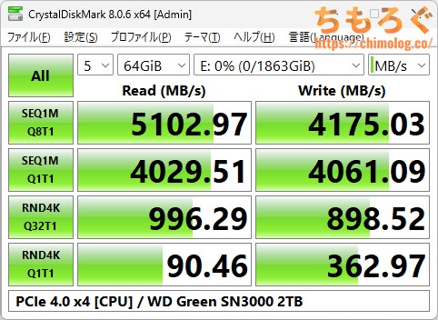 SN8100やSN7100と同様に、SanDisk製「nCache 4.0」アルゴリズムはやはり優秀です。