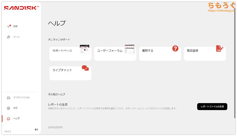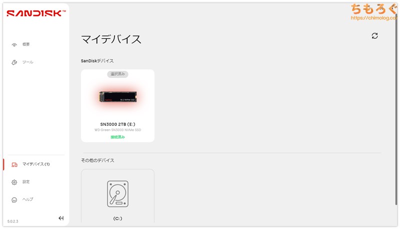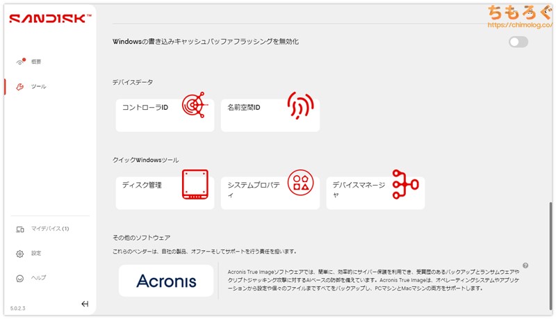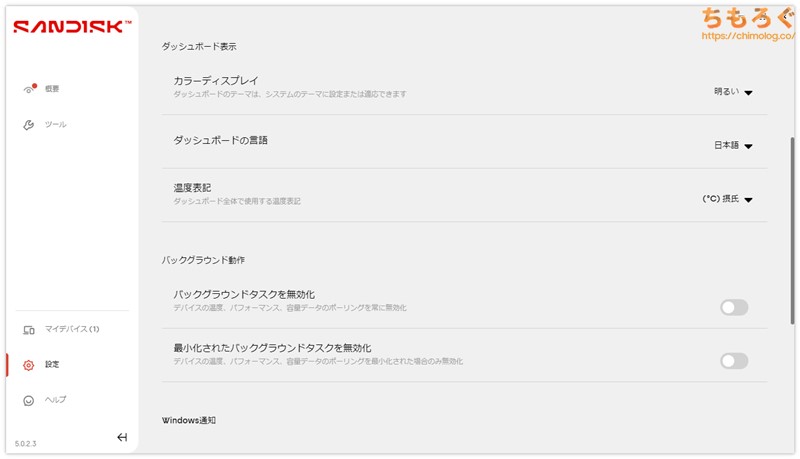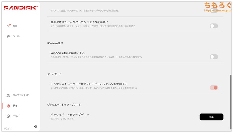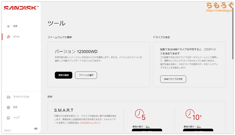 SanDisk公式サイトから無料でダウンロードできる、純正ユーティリティ「SanDisk Dashboard」に対応します。