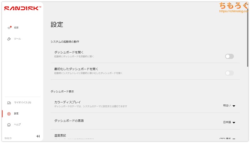「SanDisk Dashboard」※クリックで画像拡大します